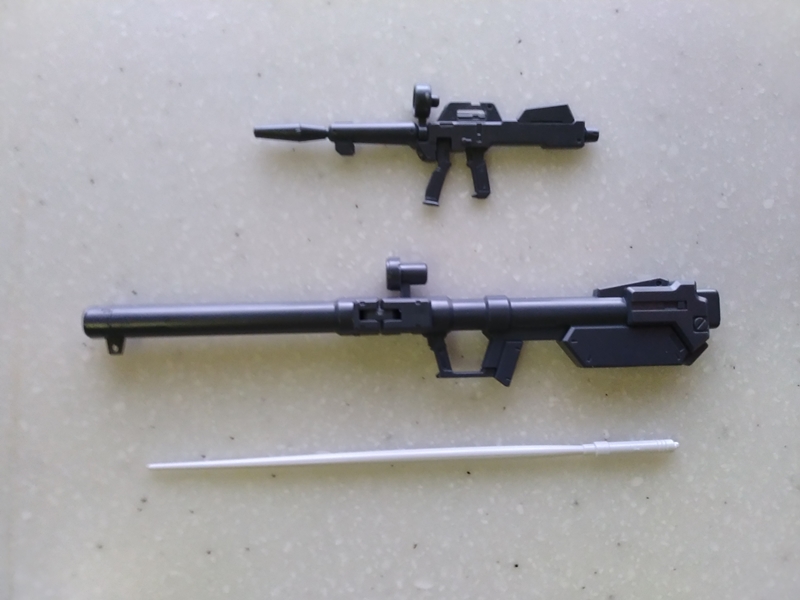 付属する武装は、ビームライフル(GP01と同型のもの?)、フォールディング・バズーカ、そして単体成形のビームサーベルとなります。