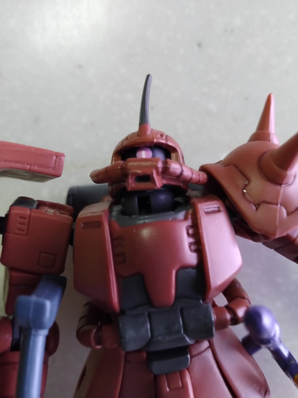 その他細かい部分では、指揮官機用のツノを付けるかどうかとか、左肩のスパイクアーマーの形状をどうするか(ノーマルザクのスパイクにするのか、いっそのことスパイク無しにするのかなど)も思案中です。
