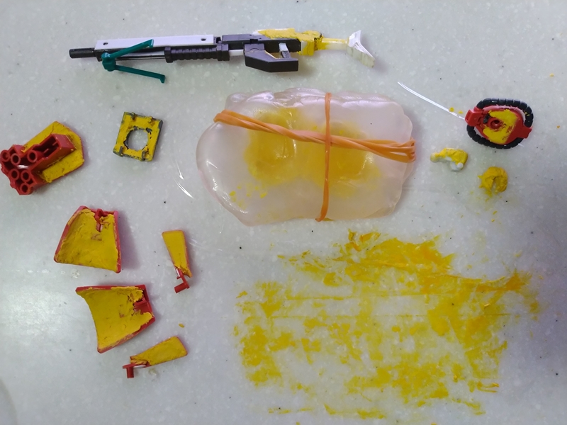 今回は、今作成中の試作ビームライフル用に使おうとしているドーベンウルフから流用中のバイポッドの型取りを試してみることにしました。