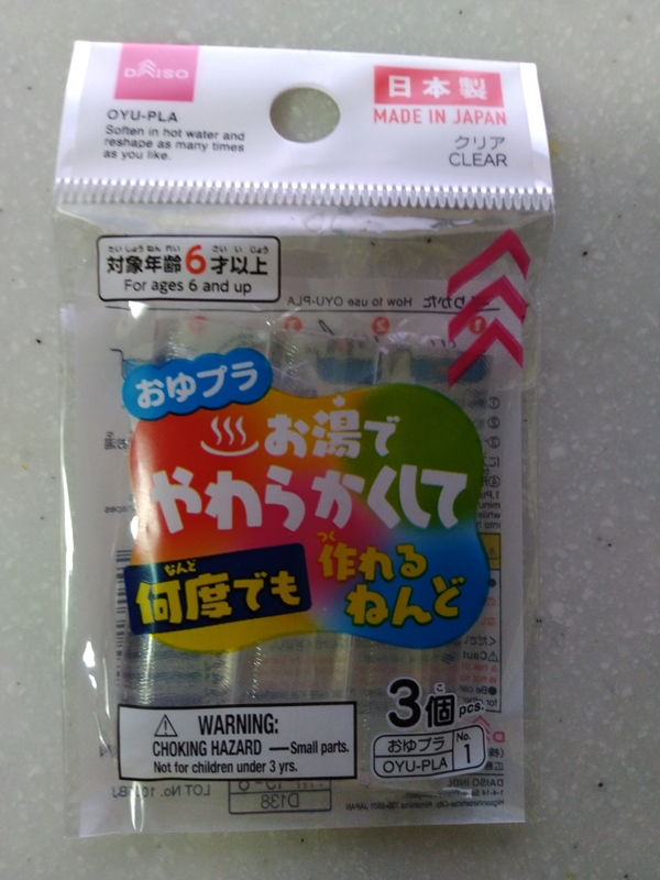 型取り用におゆまるをとりあえずいくらか購入したものの、一度使うと結構ポリパテがこびりついてしまうため、本来何度も再利用できるのが売りのはずがそう何度も使えそうに無いため、ある程度の量をストックしておこうと思って、近所の100鈞を覗いていたところ、近所の一店舗に類似品が入荷しているのを確認したので、とりあえずクリアカラーのモノを2袋買ってみました。