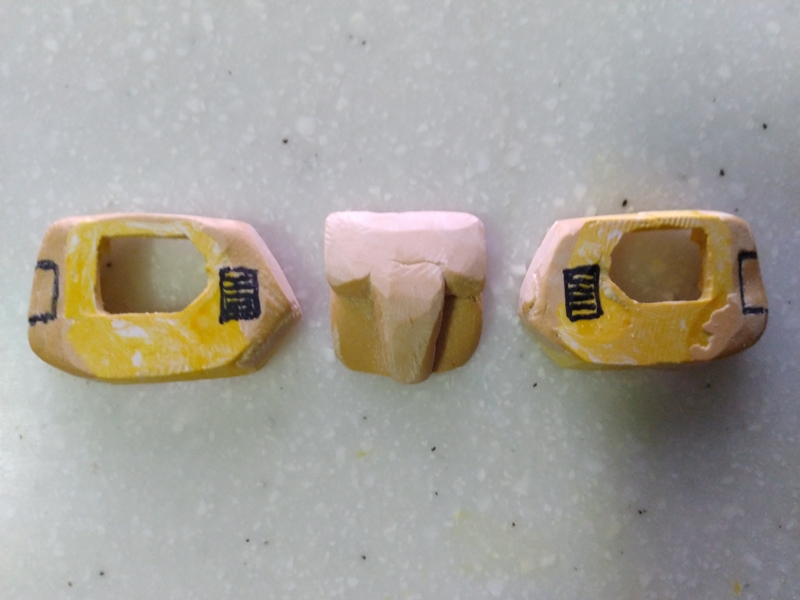 注文していたおゆまるが届いたので、型どりをしてポリパテで胸部両側のパーツの複製をしてみました。