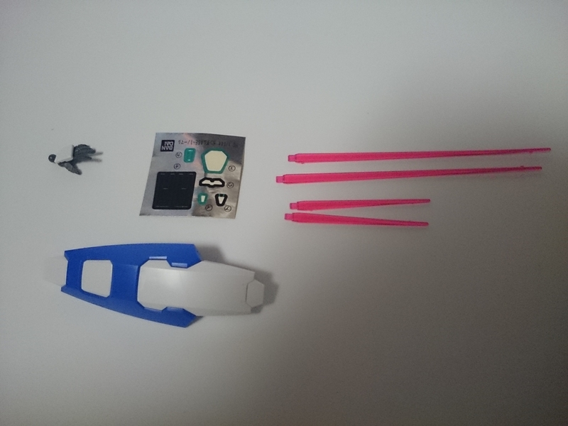 他には、PC001のポリキャップ、ピンクのビームサーベル刃が長短2セット、そしてホイルシールです。