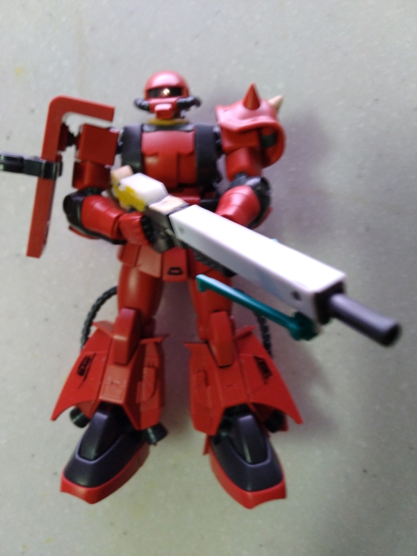 以前から、首の動きをよくするための改修を進めていましたが、ベースとなる首関節パーツが、オリジナルのポリキャップよりも長めになっているということもあって、どうも頭部の位置が高すぎて、ザクっぽく無い感じになってしまっているのをなんとか頑張っているところです。