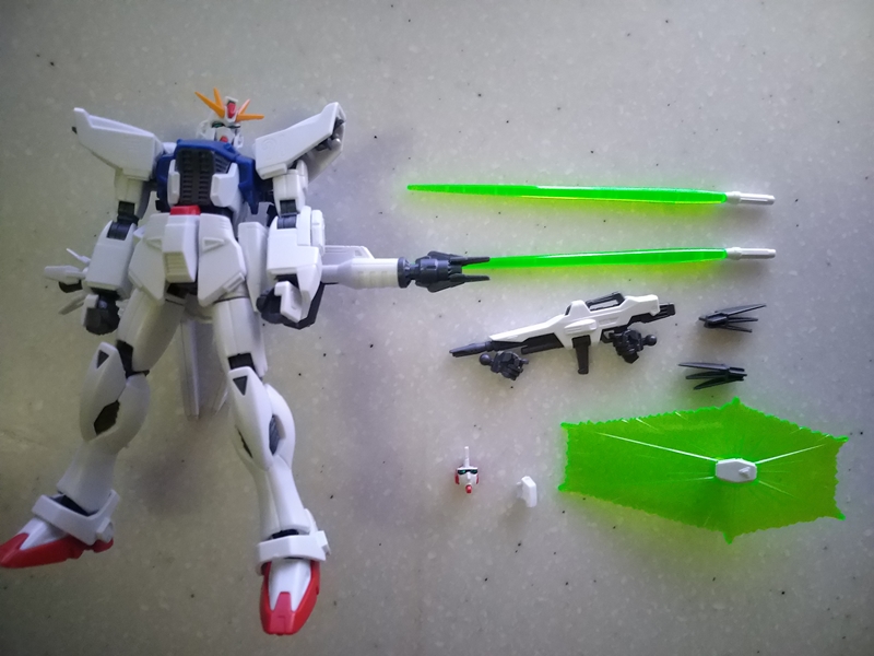 予定どおりF91の武装類を組み立てて、キットの一式を完成させました。(ただしシール類は頭部のみ貼ったのみです)